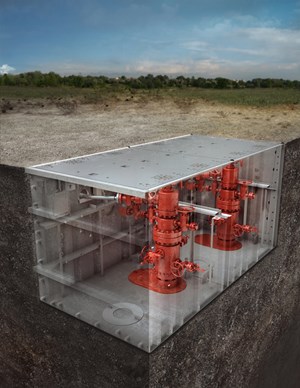 Just as an underground parking garage increases surface space while keeping cars secure, NOV has developed a below-grade containment well cellar that reclaims pad space without sacrificing protection. By positioning the wellheads and production equipment below the surface, the cellar creates an unobstructed, fully contained workspace that enables SIMOPS, improves pad optimization, and enhances safety, Fig. 1.