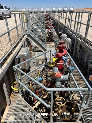 The below-grade cellar includes engineered access hatches positioned directly above critical components, such as the lubricator port, choke, and master valves. These hatches provide customized access to the frac stack, enabling crews to safely install, operate and remove the high-pressure valve assembly without removing the cover plate or disrupting containment. The configuration enables fracturing, wireline, and coiled tubing operations to occur at the same time.