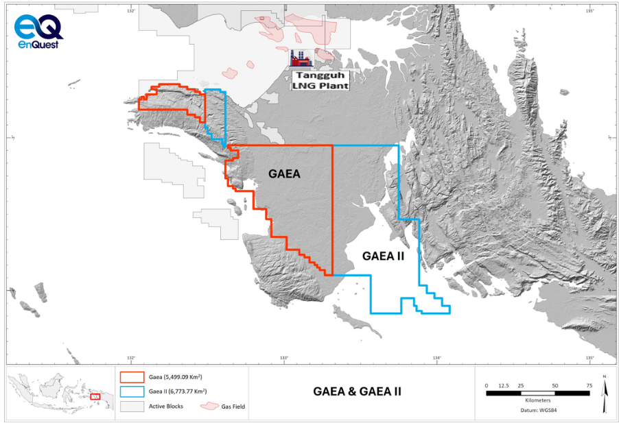 The Gaea and Gaea II blocks present a multi-Tscf unrisked resource potential for EnQuest, estimated to be in excess of 100 Tscf by the Ministry of Energy and Mineral Resources (see Notes to Editors below) and are located in proximity to the bp-operated Tangguh LNG facility (Fig. 1).